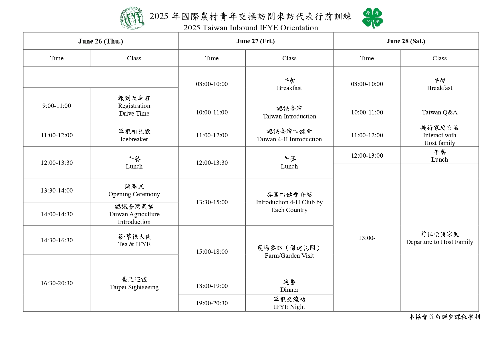 二、參加對象:本年度接待家庭代表、出訪代表、接待草根人員及對國際四健交流有興趣者。