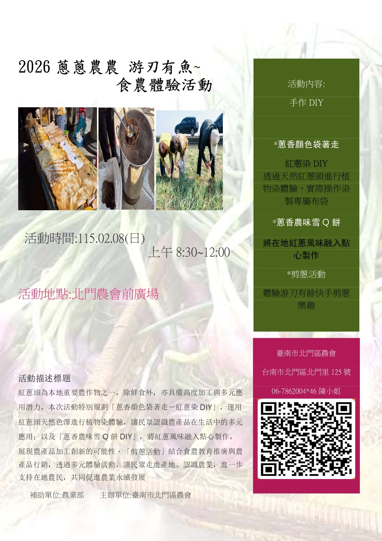 臺南市北門區農會辦理「115年度食農創新整合計畫」--『蔥蔥農農。游刃有魚』,食農體驗活動