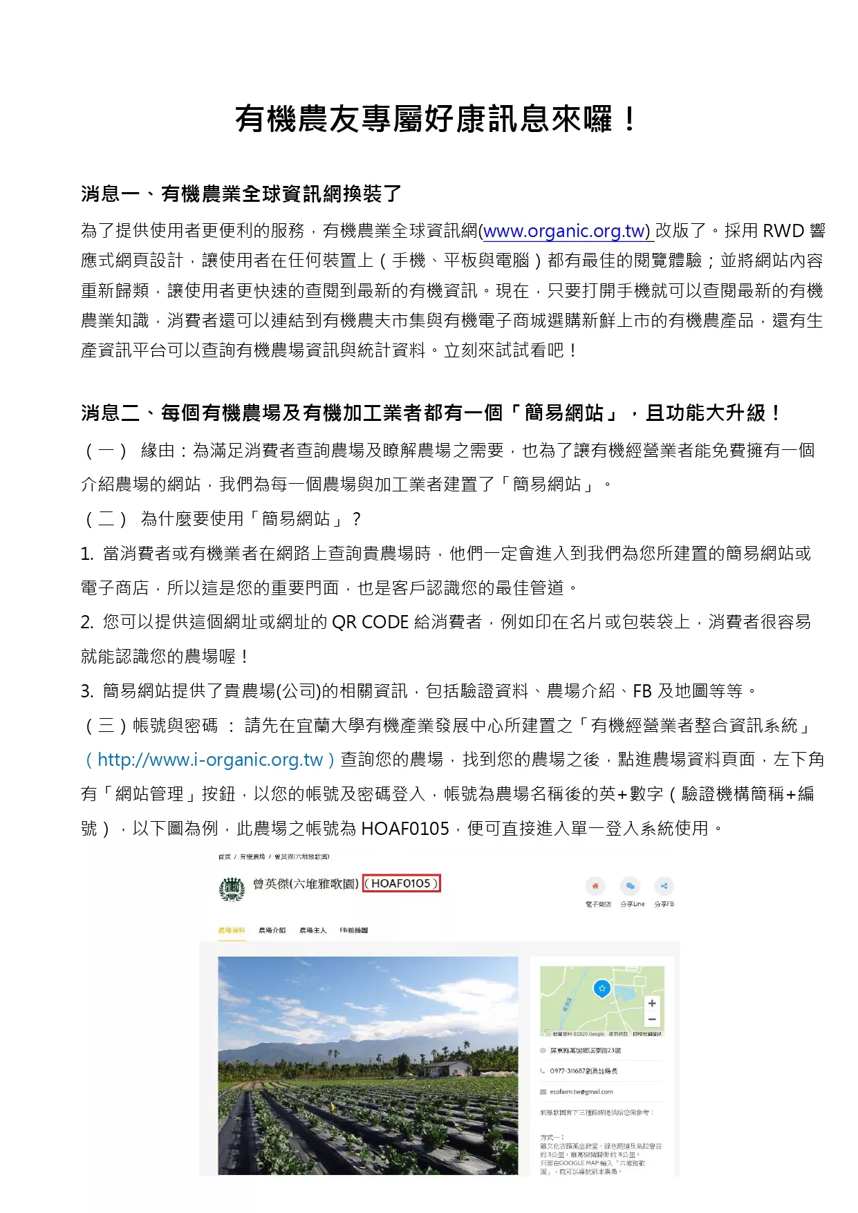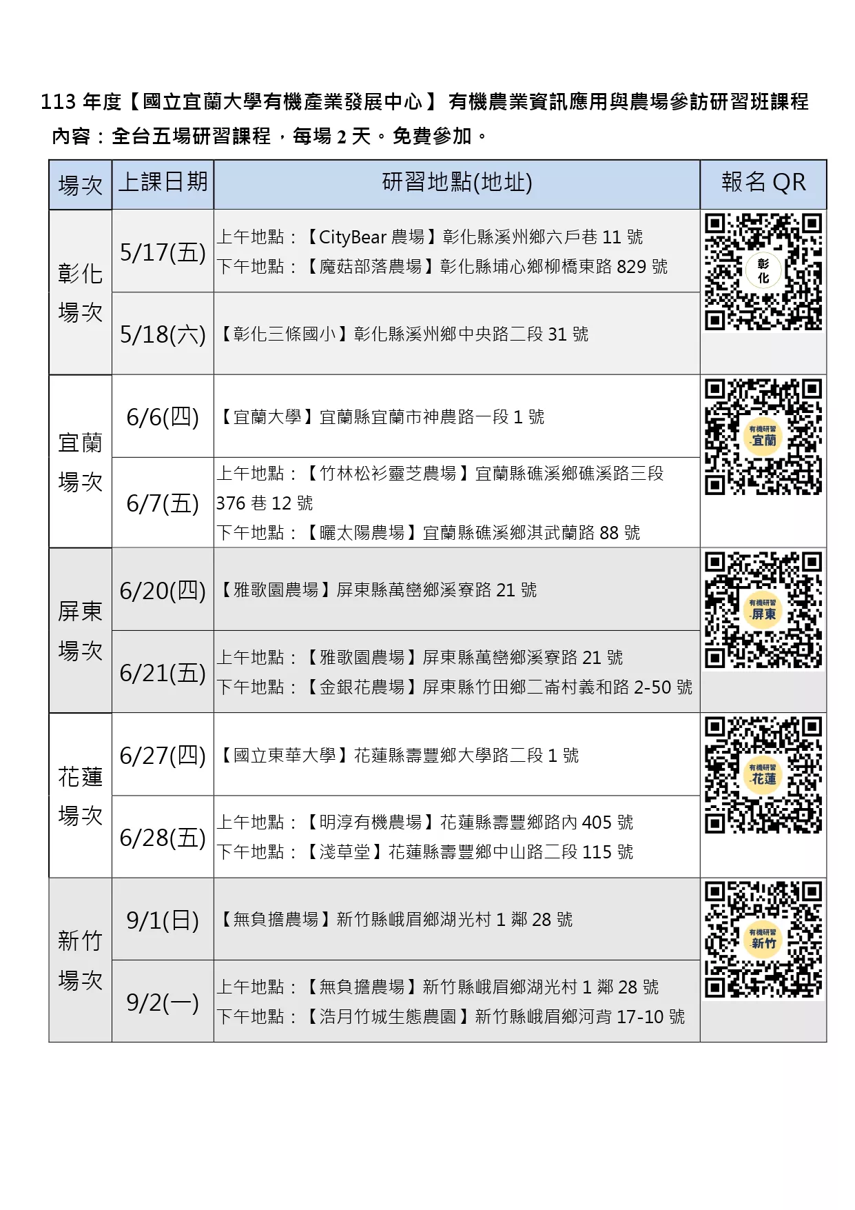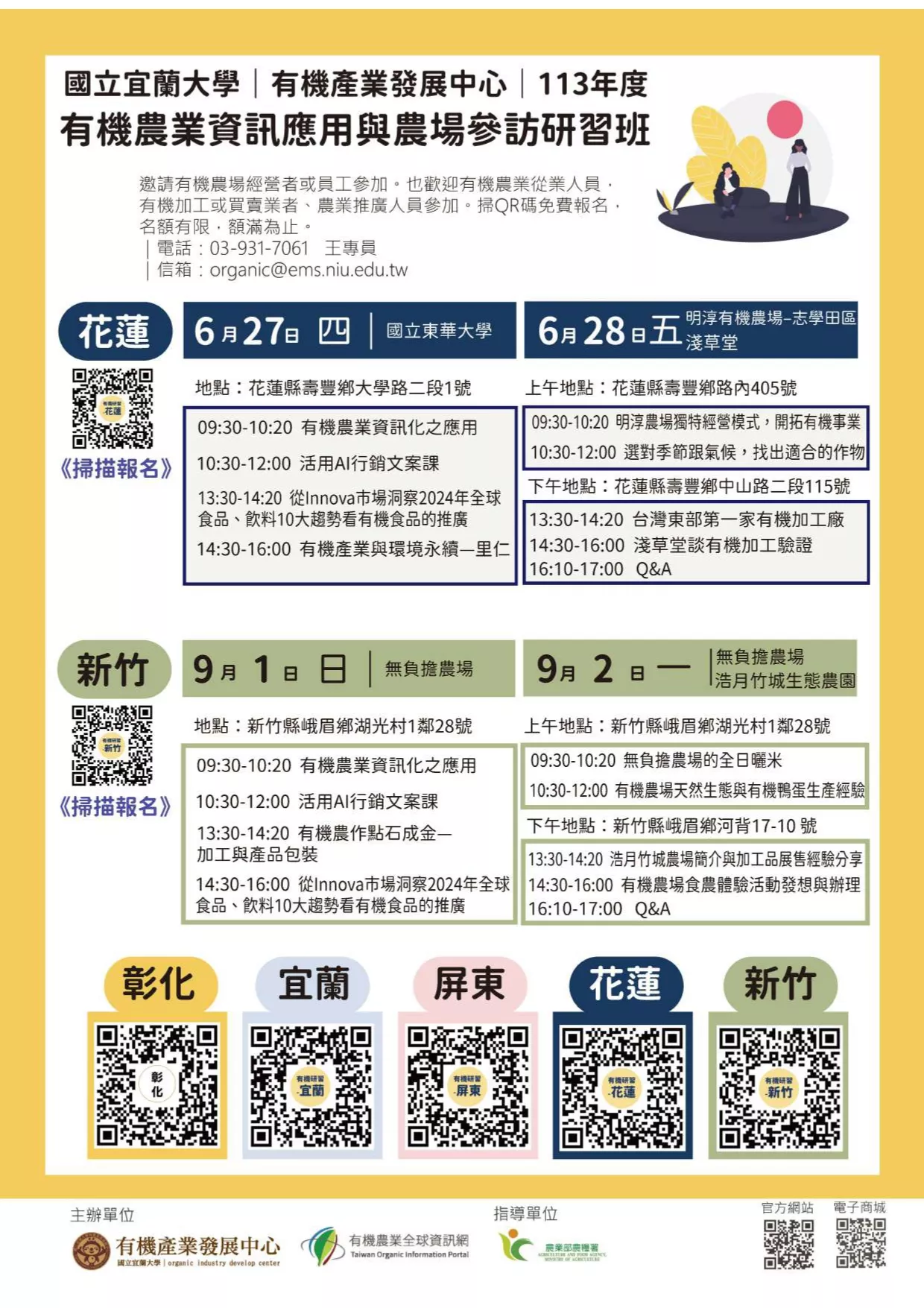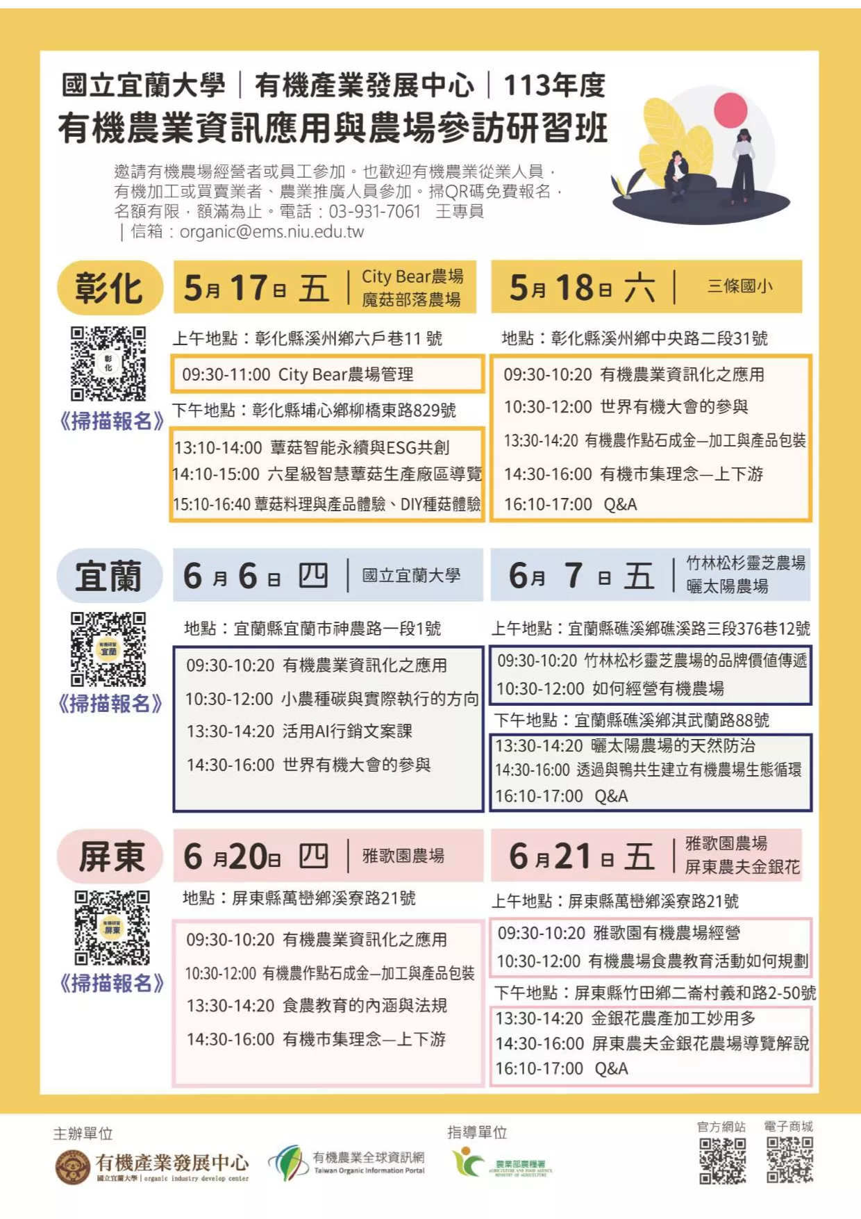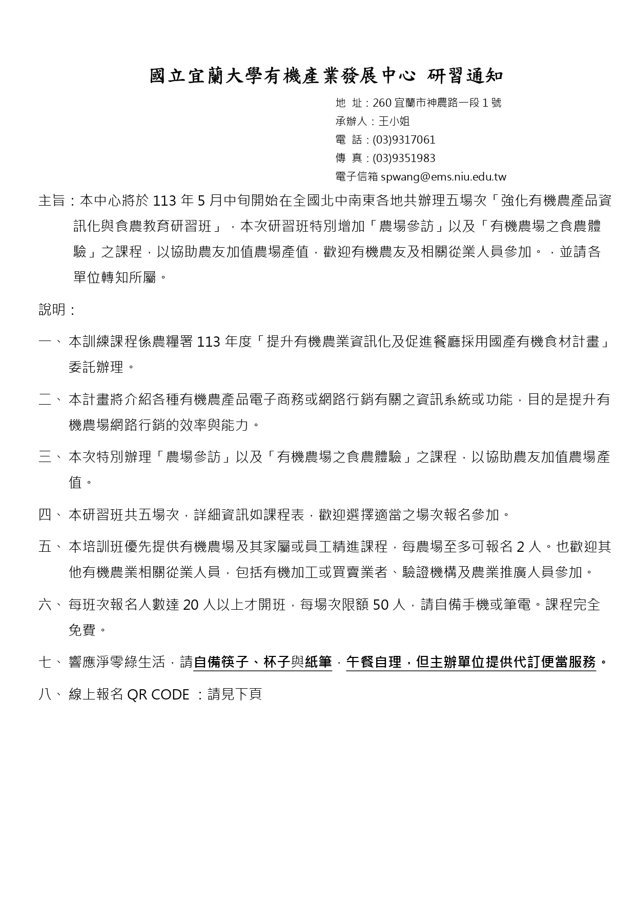 國立宜蘭大學辦理「113年有機農業資訊應用與農場參訪研習班課程」資訊