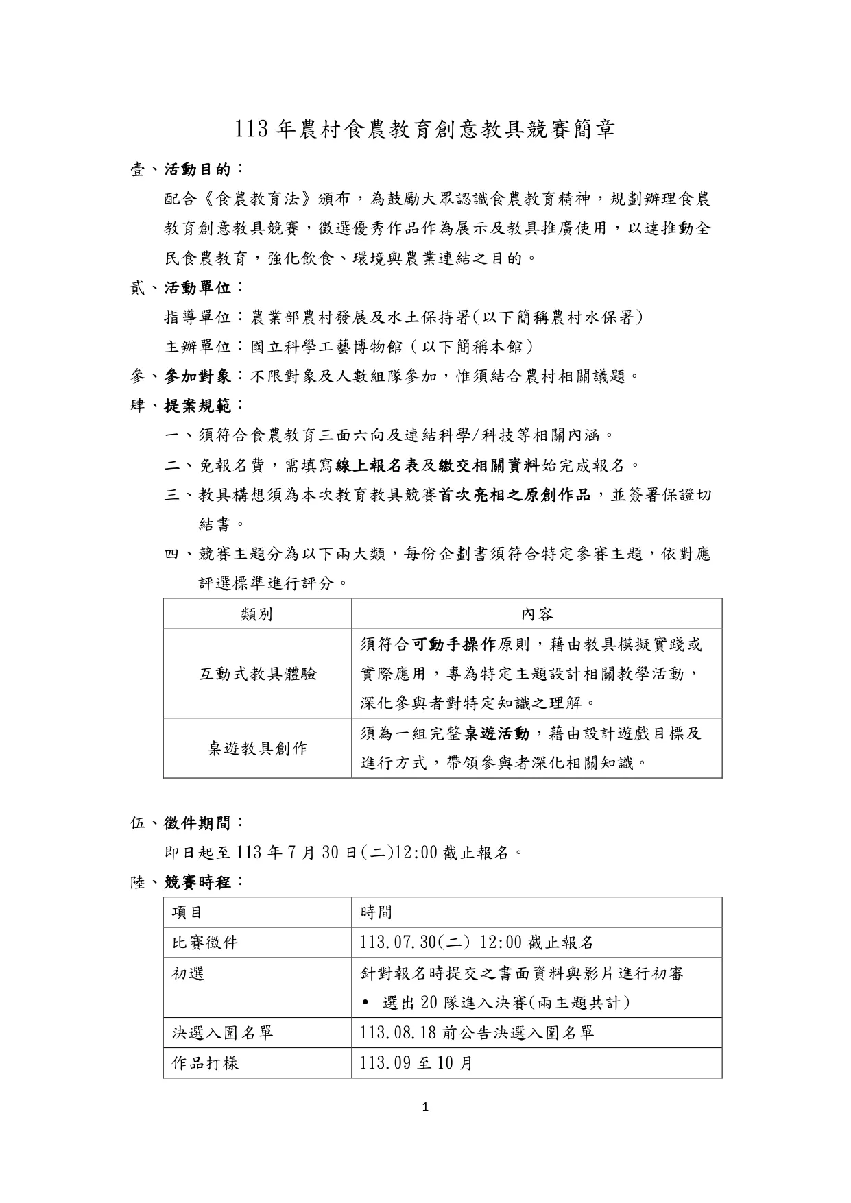 二、即日起至本(113)年7月30日,相關競賽說明,請參閱競賽簡章(附件1)。