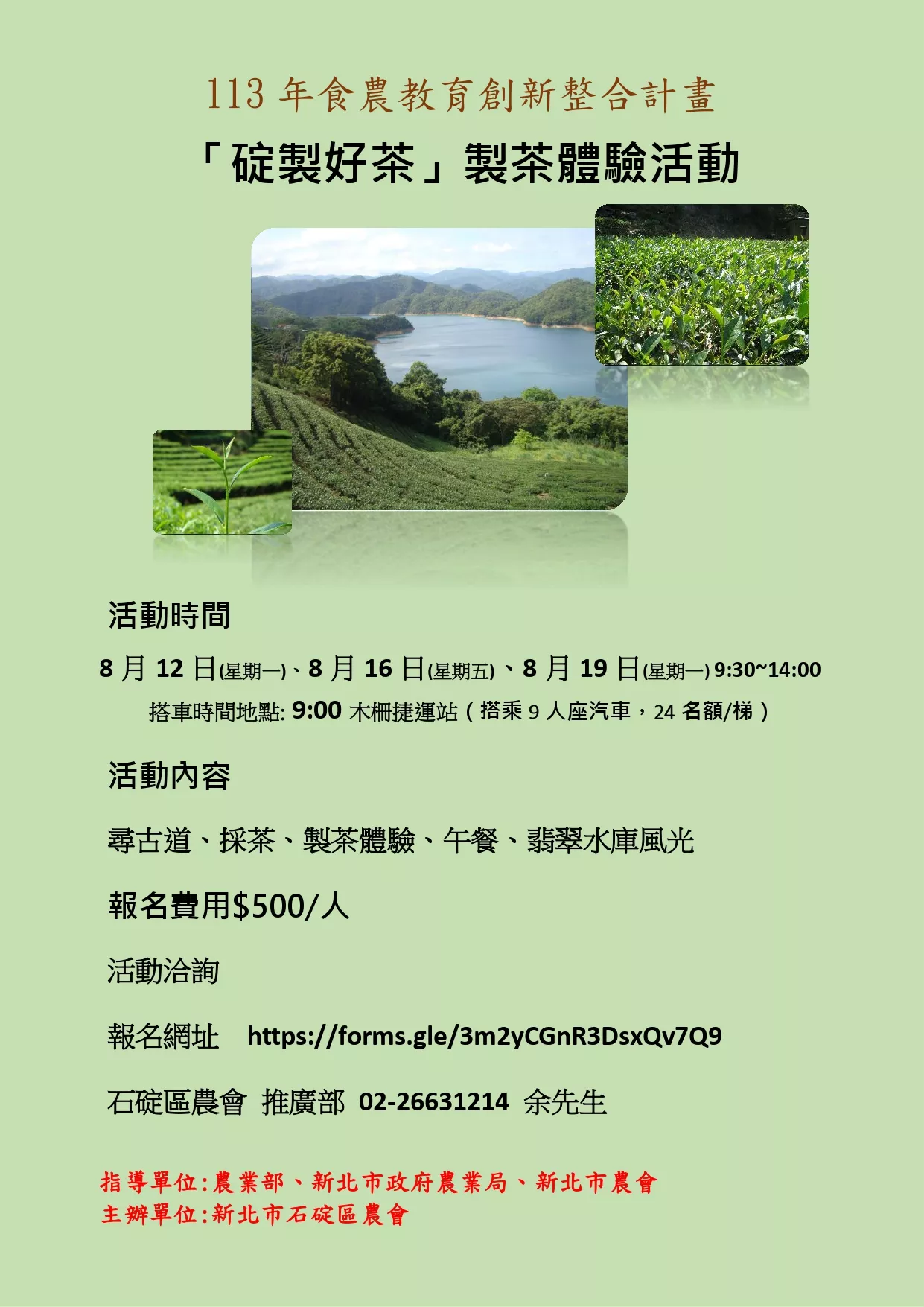石碇區農會辦理113年度食農教育創新整合計畫-「碇製好茶」製茶體驗活動